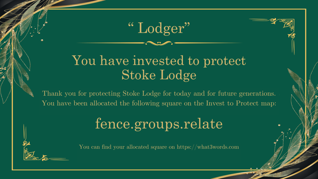 There are some very quirky squares going, with several that include the word ‘fence’ and we do have some other pretty special combinations up for grabs! For simplicity, everyone gives what they can and receives acknowledgement that you’ve invested to protect that square – we are very happy to take special requests on locations or any significant or meaningful words that appear on Stoke Lodge on the What3Words app, please just email us and we will see what we can find for you.